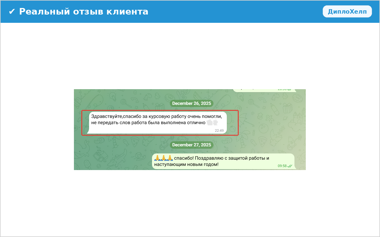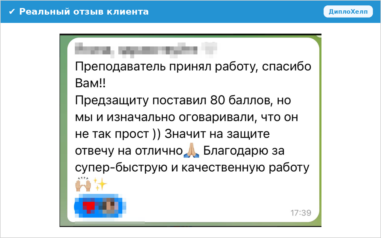 Работаем без предоплаты. Все расчеты проходят после проверки Вами готовой работы. Если у Вас или научного руководителя будут претензии к качеству работы в рамках поставленного задания - все исправления будут внесены бесплатно. Итоговый расчет только после принятия работы!