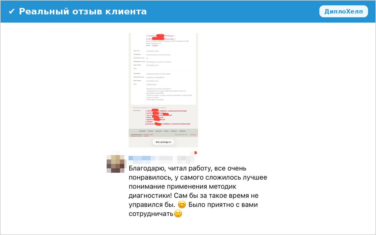 Помогаем студентам и выпускникам привести в порядок ВКР, дипломную работу, отчеты по практике, подготовить статьи к публикации, выполнить курсовую работу, подготовить к защите презентацию и сопроводительные материалы. Если у вас уже есть текст, план, замечания научного руководителя или требования вуза, поможем разобраться, исправить ошибки и подготовить материалы к сдаче.