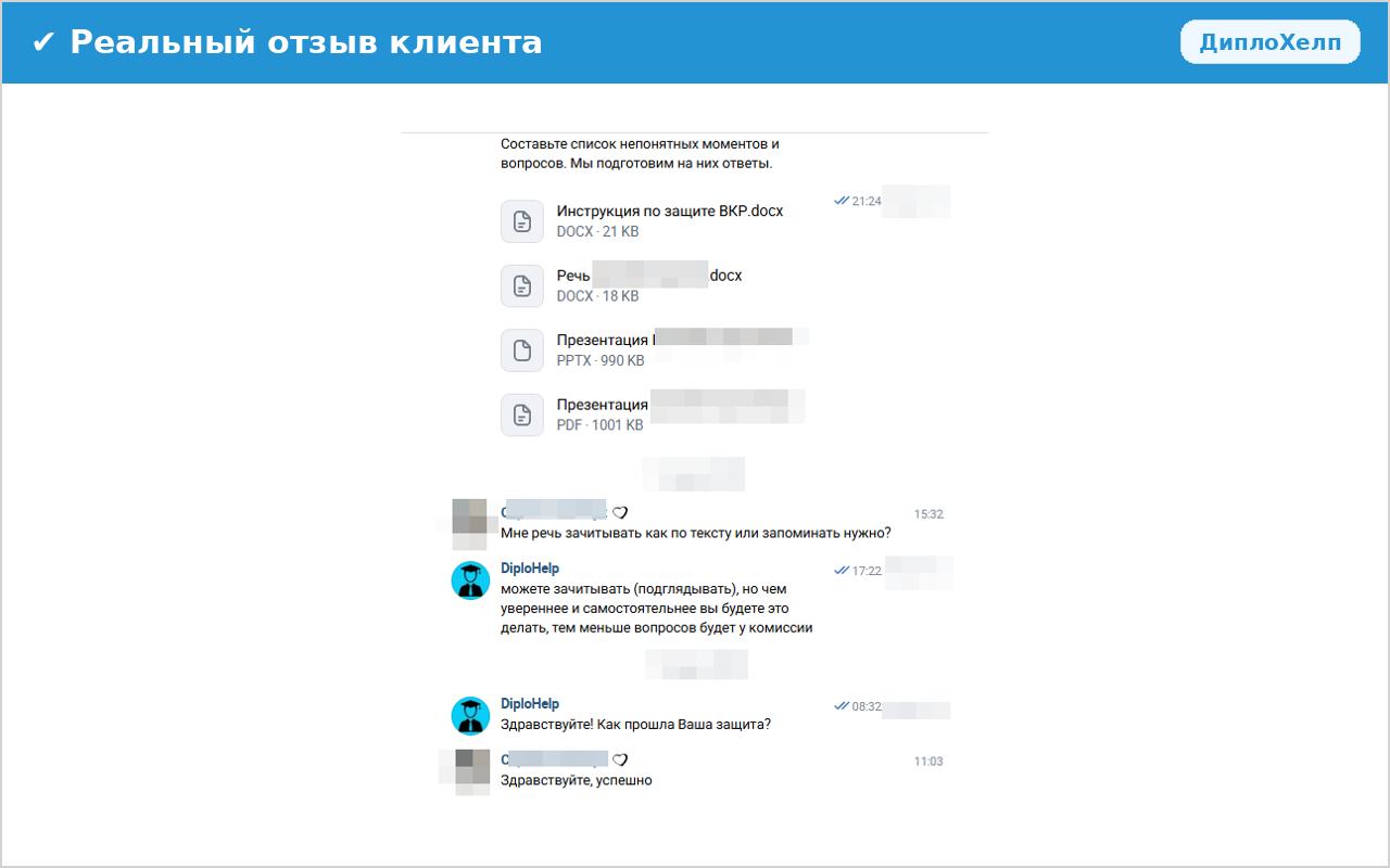 - готовые материалы для подготовки к защите;