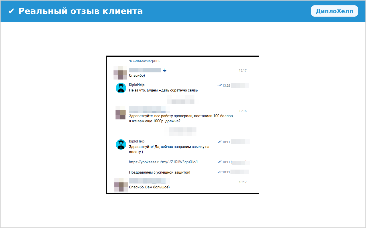 Мы гарантируем конфиденциальность наших клиентов. Отзывы публикуются с согласия заказчиков.